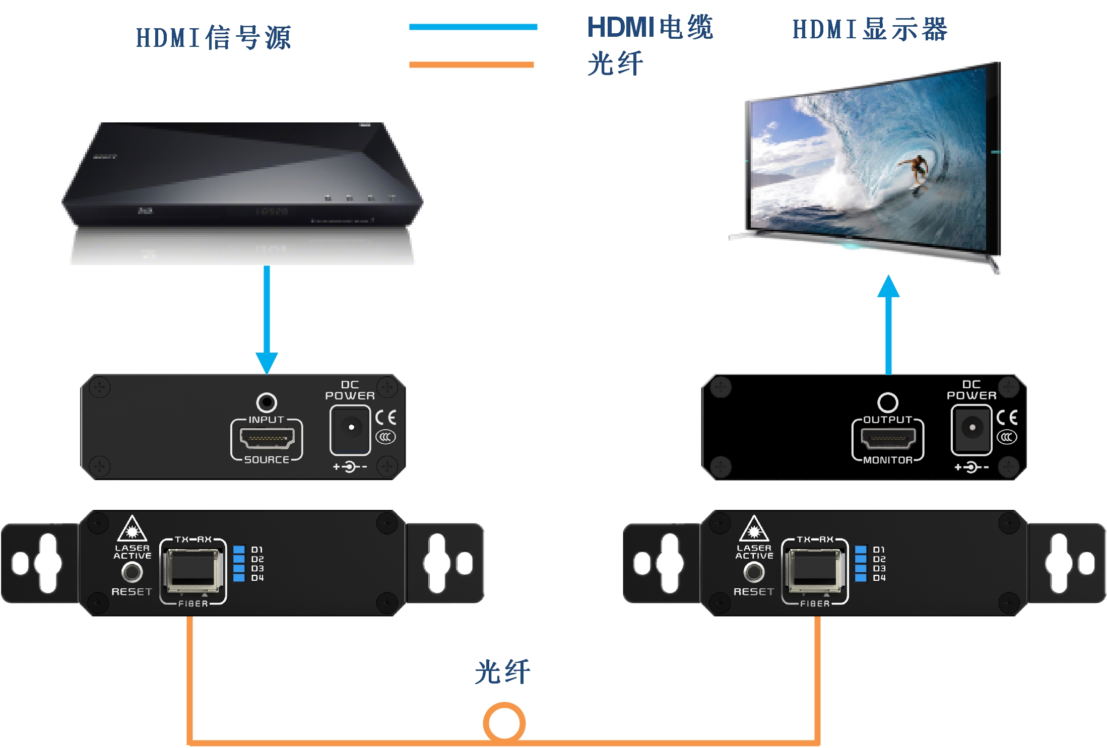 HFX-1100T/R-D80 | 双纤1080P HDMI光纤延长器,EDID学习,传输80Km |