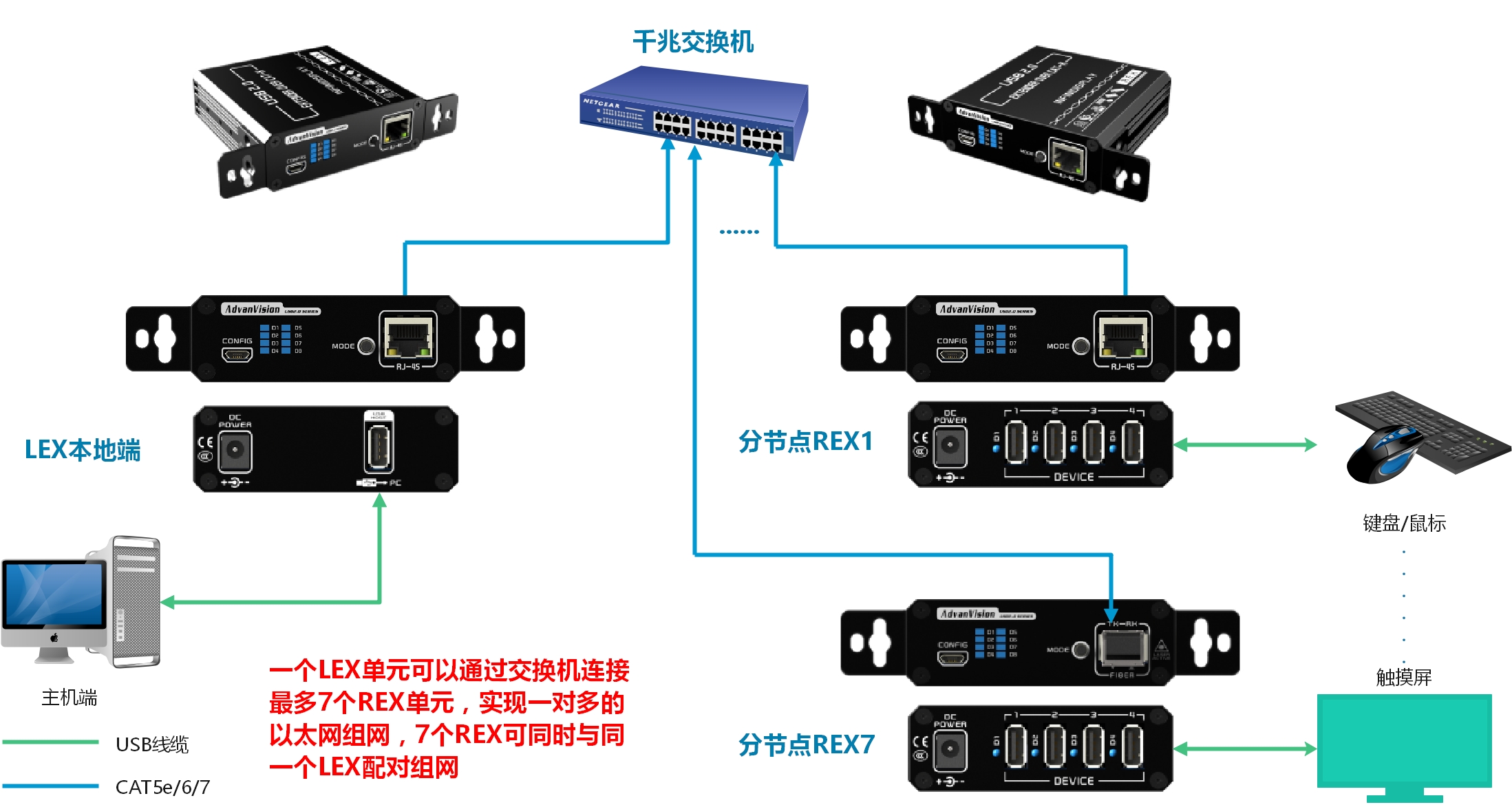 ※ 采用自主研发分布式USB2.0实时透传技术,即插即用,无需安装驱动软件